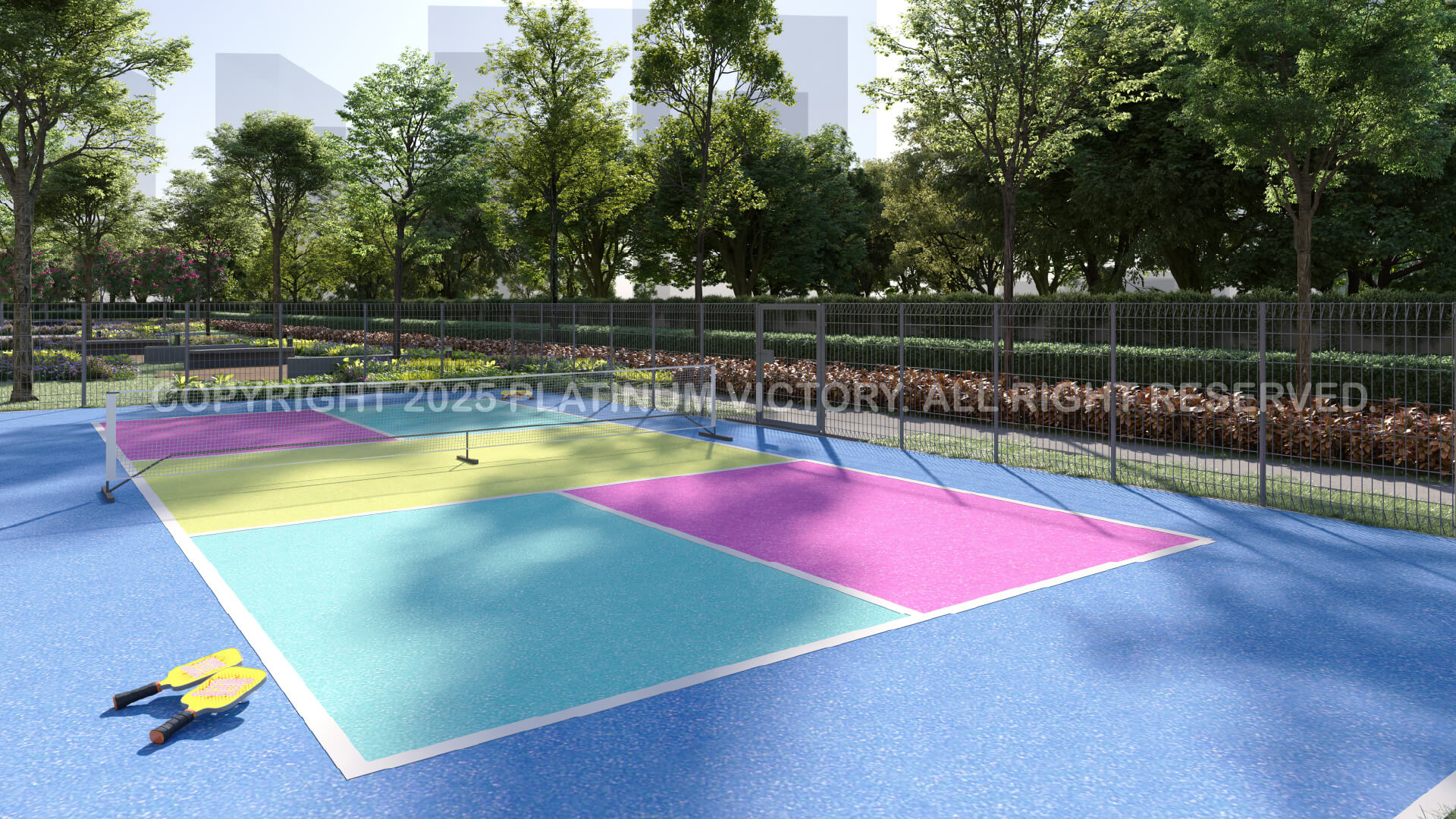 PSV2 Residences brings families and communities together with vibrant outdoor spaces. Children can laugh and play safely at the colorful playground, while residents of all ages can enjoy friendly games at the lively pickleball court — all surrounded by beautiful greenery.