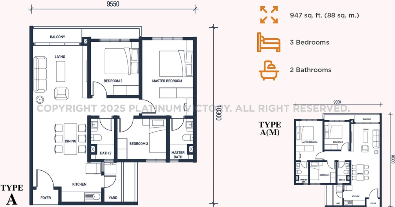 Explore PSV2 Residence @ Platinum South Valley — Type A (947 sqft)