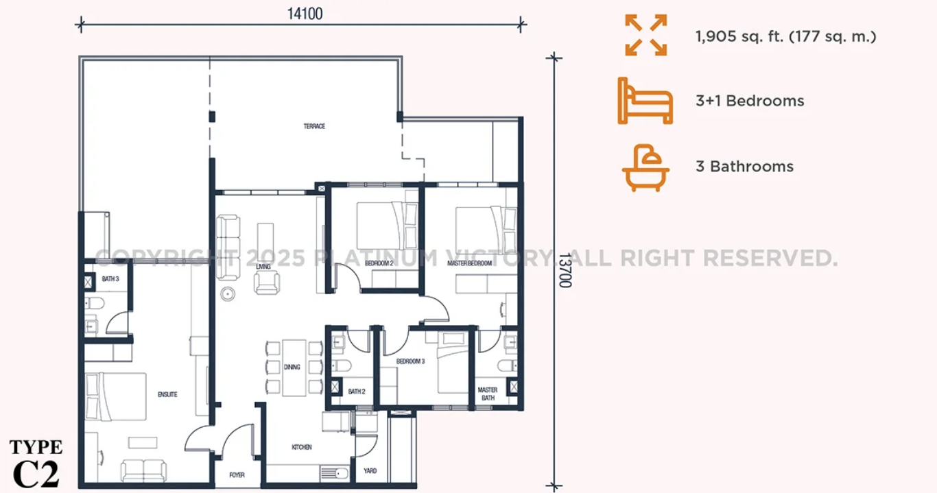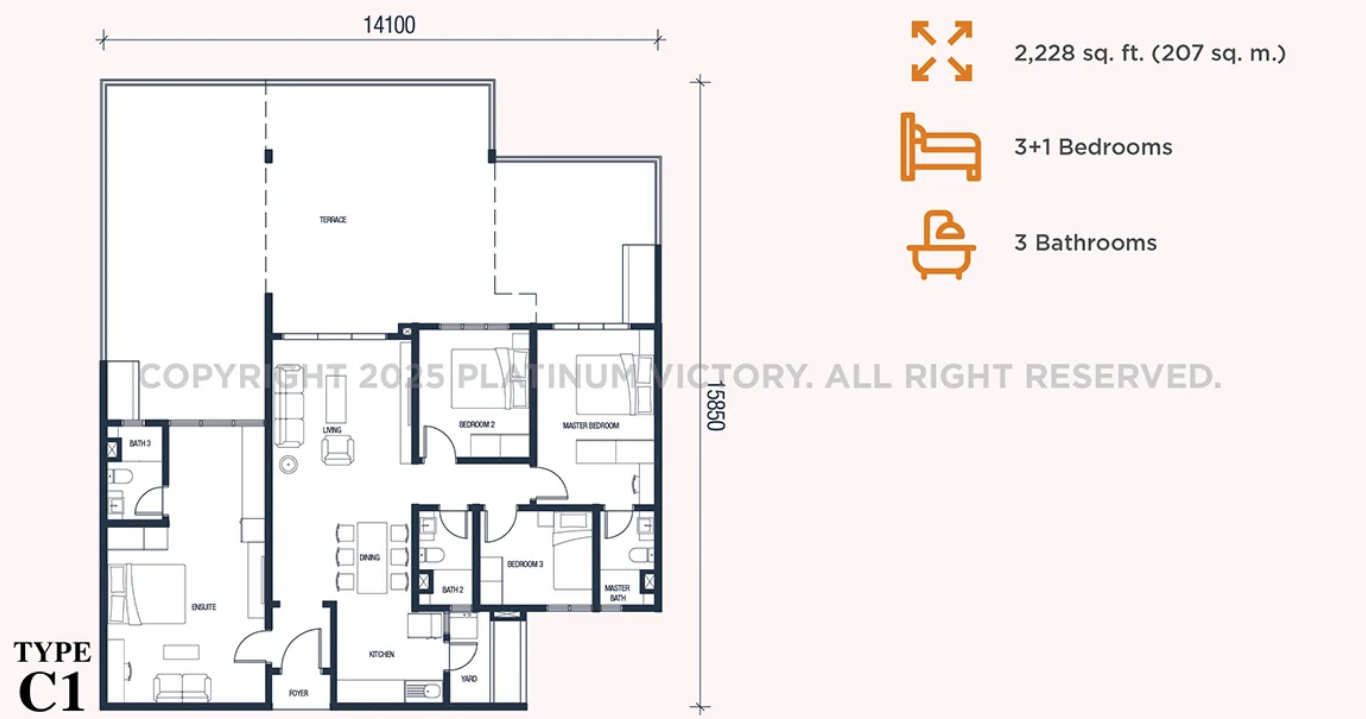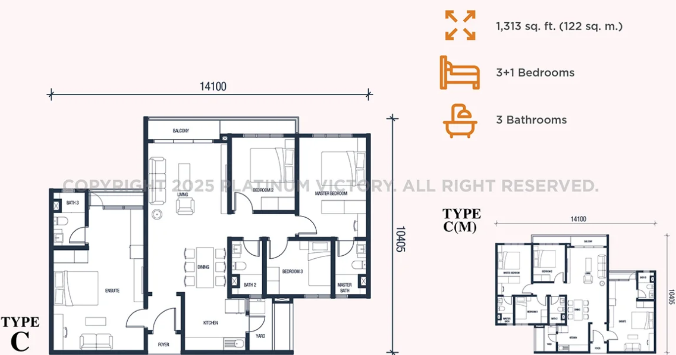 Explore PSV2 Residence @ Platinum South — Type C (1313 sqft)